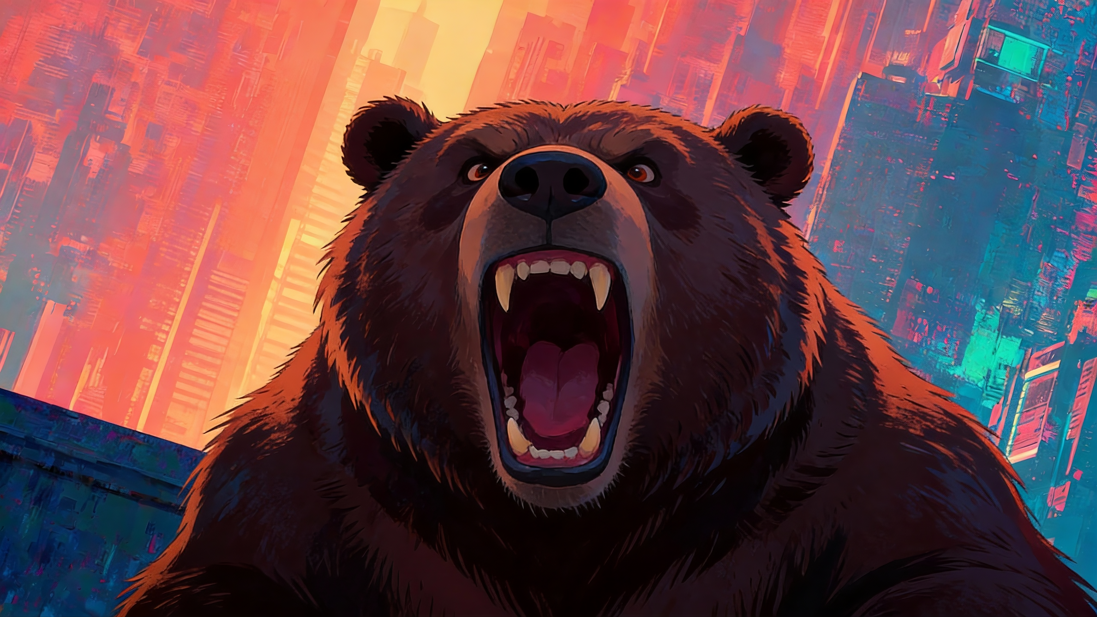 Use @Image1 as the first frame. The camera rotates and pushes in; the character suddenly looks up. Facial features reference @Image2. They start roaring loudly—excited with a touch of comedy—referencing the facial expression in @Image3. Then the character's body transforms into a bear, referencing @Image4.